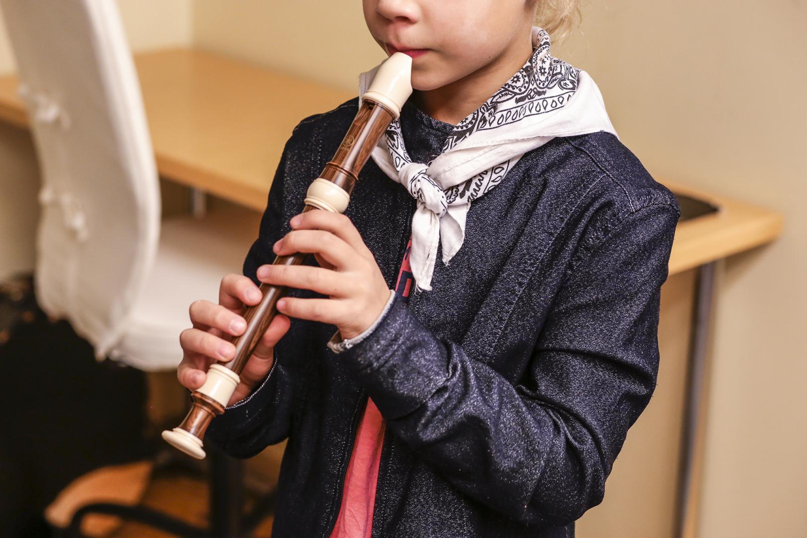 På lektionerna lär vi oss behärska instrumentet och läsa noter. Vi övar oss att spela tillsammans genast från början. Vi börjar med att spela på Yamahas blockflöjt av plast och när studierna framskrider, på instrument av trä. Läraren ger råd vid anskaffning av eget instrument.